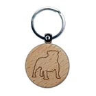 Bulldog English British Dog Outline Engraved Wood Round Keychain Tag Charm