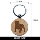 Bulldog English British Dog Solid Engraved Wood Round Keychain Tag Charm