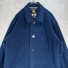 Chest Size: 44 in Vintage: No Country/Region of Manufacture: Japan Department: Men gtin13: Does not apply Insulation Material: NA Model: NA Color: Blue MPN: NA Fabric Type: Fleece Type: Jacket Personalize: No Product Line: NA Lining Material: NA Outer Shell Material: Polyester Size: 3 Season: Fall, Spring, Winter Occasion: Business, Casual, Travel Size Type: Regular Collar Style: NA Fit: Slim Performance/Activity: Walking Jacket/Coat Length: 31 in Handmade: No Style: NA Brand: Burberry Accents: Logo Garment Care: NA Features: Collared, Pockets UPC: Does not apply Warmth Weight: NA Pattern: Check Closure: Button Theme: NA