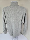 Available for sale is a beautiful pre-owned Men's BURBERRY 100% Cashmere Cable Knit Turtleneck Sweater in Size L which can also fit a slim XL (check below measurements). This luxury sweater is in a beautiful light gray melange color and features an elegant cable knit design throughout making it a versatile piece. Made in Scotland by Burberry, this sweater is made of very high quality cashmere and is very warm. Other than a tiny bit of yellowing on part of the turtleneck which isn't visible (check photos), it is in decent condition with no holes, tears, pulls, and little to no pilling. The sweater is a Mid-weight 2-3 ply knit. Please check the measurements below. Measurements: Shoulder: 23" Chest: 22" Length: 29" Sleeve: 22" from armpit to cuff Payment: We Accept PayPal, and eBay Payments which accepts most debit & credit cards and linked bank accounts. Shipping: We ship within 24-48 hours and we generally use USPS Ground Advantage or USPS Priority Mail for most of our shipments. We ship to al 50 states and we also ship Internationally as well, using eBay's International shipping service. We also offer expedited International shipping for an additional cost as well.