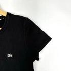 Material: Cotton Character: NA Personalize: No Fabric Type: NA Garment Care: NA Pattern: Solid Sleeve Length: Short Sleeve gtin13: Does not apply Vintage: No Brand: Burberry London Style: Basic Size: 38 Season: Fall, Spring, Summer Closure: Pullover Sleeve Type: NA Handmade: No Type: T-Shirt Theme: NA Strap Type: NA Features: NA UPC: Does not apply Department: Women Country/Region of Manufacture: Japan MPN: NA Accents: Embroidered Color: Black Neckline: Crew Neck Occasion: Business, Casual, Travel Fit: Slim Size Type: Regular