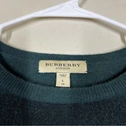 Burberry London Wool/Cashmere/Silk Blend Plaid Sweater Size Large Color: Green Wool, Cashmere, & Silk Blend Long sleeve Lightweight Crewneck No rips holes or stains Approximate measurements laying flat Chest 20.5” Length 29”