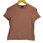 Burberry Short Sleeve Knit t-shirt soft pink- M Brand: Burberry Size: M Type: Knit T-Shirt Color: Soft pink Closure: Pullover Condition: Pre-owned. In Good Condition. Burberry Short Sleeve Knit T-Shirt in a soft, muted pink color, crafted in Italy. Crafted from soft, high-quality knit fabric. The classic round neck and short sleeves offer a relaxed fit, while the ribbed neckline, cuffs, and hem add a refined texture. Features Burberry logo tag subtly. Perfect for layering or wearing solo, this pullover t-shirt effortlessly blends versatility with luxury, making it a timeless addition to your everyday ensemble. Approximate Measurements Laid Flat: Pit to Pit: 16" Length: 20" Casual, Comfy, Comfort, Luxury, Preppy, Minimalist, Chic, Trendy, Closet Staple, Lagenlook, Designer, Lux, Italy, Everyday, Office, Layering