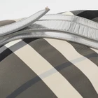 This alluring tote bag for women has been designed to assist you on any day. Convenient to carry and fashionably designed, the tote is cut with skill and sewn into a great shape. It is well equipped to be a reliable accessory.Certified by The Luxury Closet - This item has gone through a detailed authentication process overseen by our experts. We offer a lifetime guarantee of authenticity on all our items. Import duties, taxes and charges are not included in the item price. These charges are the buyers responsibility. Please check with your country’s customs office to determine what these additional cost will be prior to buying. Our eBay Store About Us Contact Us Add to Favorite Sellers Burberry Silver Beat Check Nylon Victoria Tote $614.9 This alluring tote bag for women has been designed to assist you on any day. Convenient to carry and fashionably designed, the tote is cut with skill and sewn into a great shape. It is well equipped to be a reliable accessory. Product Details Brand Color Silver Dimensions Height: 31 cm, Width: 10 cm, Length: 26.5 cm Material Laminated Leather, Nylon Size Outsole Width Outsole Length Heel Height Includes The Luxury Closet Packaging Certified by The Luxury Closet This item has gone through a detailed authentication process overseen by our experts. We offer a lifetime guarantee of authenticity on all our items. How We Check The in-house team of experts at The Luxury Closet is highly trained to verify the authenticity and the condition of the luxury products. They ensure that only 100% authentic items are put on sale.The evaluation process is unique with its own mix of assessment criteria and differs according to the category. Each item is evaluated based on the following combination of hallmarks, hardware, stitching, symmetry, material, craftsmanship, stamping, codes, hologram stickers, and packaging. Our authenticators also check if the items have been modified or amended (e.g., aftermarket diamonds, replaced batteries, repaired bags, etc.) International Buyers Import duties, taxes and charges are not included in the item price. These charges are the buyers responsibility. Please check with your country’s customs office to determine what these additional cost will be prior to buying.