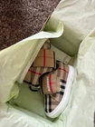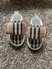 Elevate your little one's casual look with these stylish Burberry sneakers. Crafted from high-quality leather, these sneakers are perfect for any occasion. The beige color and unisex design make them a versatile addition to any baby's wardrobe.Featuring a comfortable fit and durable construction, these sneakers are sure to keep your child's feet happy. The Burberry brand is synonymous with quality and style, making these shoes a must-have for any fashion-forward toddler. Don't miss out on the opportunity to add these adorable sneakers to your child's shoe collection.