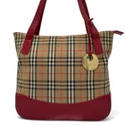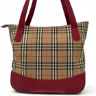 Burberry Tote Bag Handbag Nova Check Force Leather Red