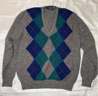 Look at this gem. The softest thing ever. Burberrys' London, New York Paris 100% wool made in Scotland. Size is 46. It is a V-neck argyle sweater long sleeves fabulous condition not a mark or snag on it. It is the softest ever. This has a liquid wool light tag. 100% lambs wool. Made in Scotland.