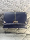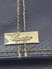 This Buxton women's navy wallet is a stylish and practical accessory made of genuine leather. With its trifold design, it easily fits in your handbag and is perfect for organizing your credit cards and cash. The wallet features beautiful accents such as rivets, stitching, and the Buxton logo, giving it a designer look. Measuring 5.25" in length and 4.25" in width, this wallet is compact and lightweight, making it ideal for everyday use. It has a unit quantity of 1 and weighs oz. The wallet comes in a blue color and has a theme of money, wallet, and logo. Its features include credit card and folding, making it a convenient choice for those who want to keep their essentials close at hand.