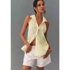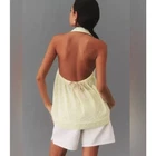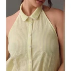 By Anthropologie Button-Front Halter Swing Blouse Green Motif Size XXS and S NWT 128.00 Style No. 4110916210337; Color Code: Cotton, polyester Button front Machine wash Imported