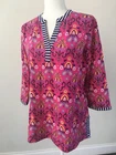 Elevate your casual wardrobe with this stunning C. Wonder tunic top. The 3/4 sleeves and V-neckline provide a comfortable and stylish fit, while the pullover closure makes it easy to wear. The top features a beautiful floral and striped pattern in multicolor, perfect for any casual occasion. Made from a blend of spandex, cotton, and modal, this lightweight and stretchy tunic is easy to care for, non-iron, and wrinkle-resistant. It is suitable for all seasons and is unlined, making it ideal for summer, fall, and spring. The top comes in size S, Pit to Pit: 20”; Length: 28” with a regular fit and size type. It is suitable for women and is perfect for a casual day out. Condition of the item is Pre-Owned in great shape! Shipped asap by USPS ground advantage mail.