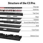 QMK/VIA software support: QMK / VIA is open-source software for keyboards that allows anyone to program and remap each key easily and quickly. You can personalize your own keyboard layouts, shortcuts, backlight effects, and more. Gasket mount design: The C3 Pro uses a gasket mount structure to reduce sound resonance while adding more typing flexibility. Along with the sound-absorbing foam and the case foam, it provides you with a quieter and smoother typing experience. 1000 Hz polling rate & NKRO: Empowered by the high- performance ARM architecture MCU with 256KB Flash, it provides a 1000 Hz polling rate for a fast and responsive typing speed in your working and gaming. The NKRO feature is convenient to help you enter multiple keypresses at a time. Easy toggle between macOS and Windows: Press the key combo FN + CAPS to instantly change the keyboard working system to Mac / Win. And it accommodates universal keycaps compatible with both systems. Shine-through double-shot ABS keycaps: Made through the ABS double-shot process, the keycaps are durable and wear-resistant. Meanwhile, the shine-through legends lit up by the north-facing LED present a glamorous look at your fingertips. And you can also switch from more than 14 types of red backlights.