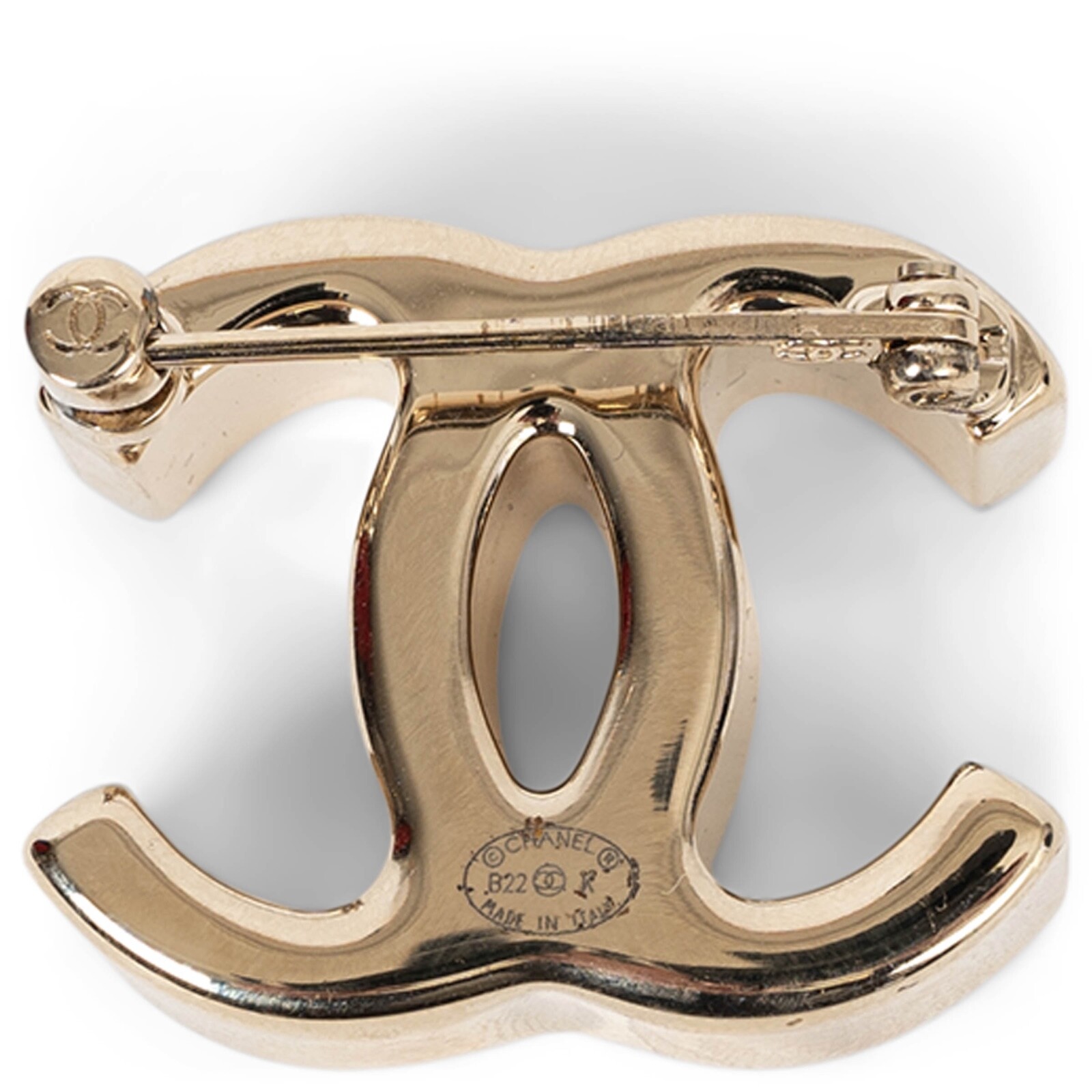 Welcome to LUX l Authentic Designer Consignment Rämistrasse 25, 8001 Zürich, Switzerland I Tue-Fri 11-18:30 & Sat 11-16:00 By bidding on our auctions you are agreeing to our Terms and Conditions below. All items come with authenticity guarantee! ------------------------------------------------------------------------------------------------------------------------------------------ Product Description: This 100% authentic Chanel brooch in beige gold-tone metal is a bold interpretation of the iconic interlocking CC logo. Designed with a thick, sculptural depth, it exudes modern elegance while maintaining the house’s timeless allure. A statement accessory that effortlessly enhances any ensemble with signature Chanel sophistication. Has been worn and is in excellent condition. 2022 Fall/Winter Measurements Model 22K Tag Size One Size Width 4cm (1.6in) Length 4cm (1.6in) Hardware Beige Gold-Tone All our listings include only the listed item unless otherwise specified in the description above - Price does not include import duties & taxes - check your countries import laws prior purchase ------------------------------------------------------------------------------------------------------------------------------------------ Terms & Conditions Luxury-Shops is not affiliated with any of the name-brand items we offer for sale. Warranties and Liabilites: Luxury-Shops declines all responsibility and cannot be held liable for any damages caused by the use of a specific garment. We also cannot be held responsible for the quality of an item (we are not the manufacturer) or any damages resulting from a manufacturing defect. No warranties of any kind are given or implied. Condition of Merchandise: Luxury-Shops offers for sale luxury top-quality products. We fully disclose the condition of each item. In the description of each product, Luxury-Shops will specify the conditions if different from the standards set by the market (Required disclosure of prior use) The main characteristics of products are shown in great detail (through numerous photographs and in-depth descriptions). The products offered for sale MAY NOT correspond to the real garments in terms of image and color because of the Internet Browser or Monitor used (color calibration). Luxury-Shops disclaims all responsibility. Every used item offered by Luxury-Shops has been cleaned and restored to the best possible condition unless noted otherwise. Every used or vintage handbag has been polished and refinished. Your purchases will be sent to you ready to be used or worn. Please be aware that vintage items may be delicate and may not be as resilient as a brand-new item. Please take appropriate care when using a vintage item. Damage to items after receipt or use by customers is not the responsibility of Luxury-Shops. Luxury-Shops is a reseller of authentic designer and vintage merchandise. We are not an authorised dealer and are not affiliated with the brands we sell on our site. Store-new designer items are only available from an authorised dealer or the actual store. Once the item leaves the authorised dealer with a customer, the item is considered pre-owned. However, items can be pre-owned and in new condition - that is, never used by the owner. Below are the definitions of the descriptions we use. NEW : in new condition, that is, never used . This means the item may have been purchased by us from an authorized dealer or a store. New items may also be pre-owned, that is, purchased by one of our consignors and never used. These items may have minor signs of handling as would any item available at an authorized dealer or boutique given that customers would reasonably handle an item when trying it on or examining it for purchase. USED: the item has been carried or worn and may be in any of the conditions described below. PRISTINE/VIRTUALLY NEW : Appears to have been used only a handful of time and is nearly new in condition. May have very slight signs of having been used upon close inspection. EXCELLENT : Used and in top condition. There may be faint signs of wear, slight scratches, marks or nicks which are not particularly noticeable and will not affect the use or wear of the item. Our descriptions and photographs will clearly indicate the condition of the item. GOOD : Used, may be an older or well-loved item. There may be slightly more noticeable signs of wear, scratches or marks. These will not affect the wear or use of the item. Our descriptions and photographs will clearly indicate the condition of the item. VINTAGE : Typically around 20 to just under 100 years old. Our vintage items are carefully examined and selected. Most are gently or rarely used, meticulously stored or cared for and will come to you in a perfectly usable condition. However, these are unique items which may be of a finer and more delicate nature than brand-new items so please be sensitive to this and have reasonable expectations of their resilience. We do not make allowances for unreasonable expectations in the condition of our items. Product Descriptions: We make every effort to display the products featured on our web site as accurately as possible, using a large array of unaltered digital photographs and detailed descriptions. Our examination and assessment of merchandise is meticulous and conducted with great attention to detail. Our expertise and product knowledge comes from many years of experience with authentic designer and vintage items. We make as much effort as is humanly possible to disclose all relevant information required for you to be completely confident about your purchase. However, the display and colour capabilities of your computer monitor could affect the colours you see on the screen and these may differ from the actual product. Luxury-Shops is not responsible for monitor limitations and cannot guarantee that a monitor's display of any colour, texture, or detail of merchandise will be accurate. Also, every designer has a different standard with 