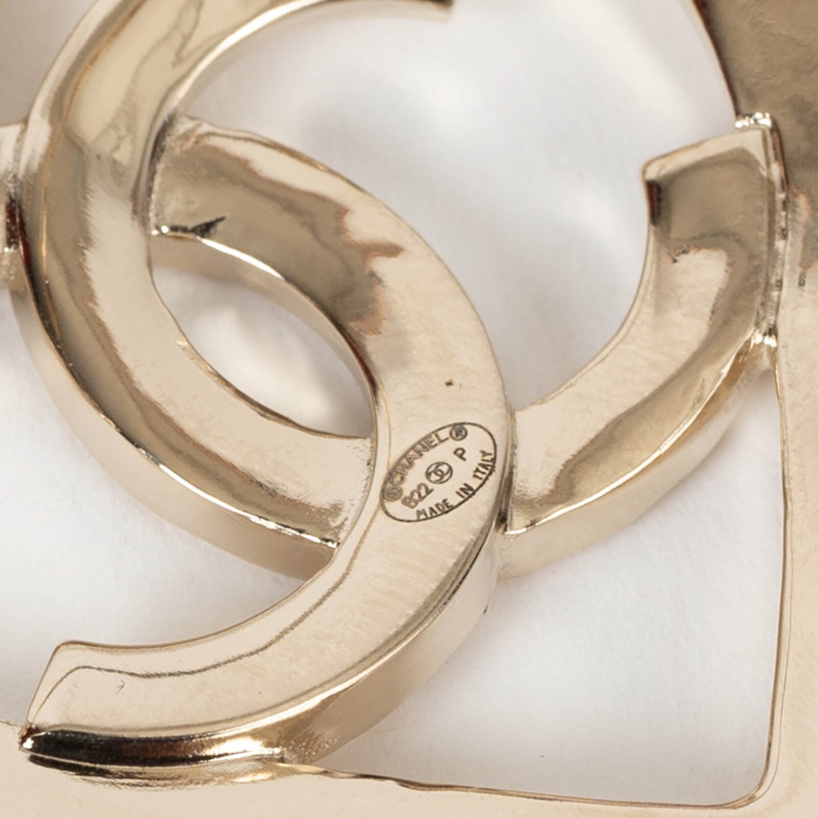 Welcome to LUX l Authentic Designer Consignment Rämistrasse 25, 8001 Zürich, Switzerland I Tue-Fri 11-18:30 & Sat 11-16:00 By bidding on our auctions you are agreeing to our Terms and Conditions below. All items come with authenticity guarantee! ------------------------------------------------------------------------------------------------------------------------------------------ Product Description: This 100% authentic Chanel heart brooch in gold-tone metal is a timeless expression of the house’s iconic elegance. Featuring intricate signature engravings throughout, it is accented with a classic CC at the center for a refined touch. A romantic and collectible piece that effortlessly enhances any look with Chanel’s unmistakable charm. Has been worn and is in excellent condition. 2022 Pre-Spring Measurements Model 22P AB7896 B07713 NG966 Tag Size One Size Width 4.4cm (1.7in) Length 4.5cm (1.8in) Hardware Beige Gold-Tone All our listings include only the listed item unless otherwise specified in the description above - Price does not include import duties & taxes - check your countries import laws prior purchase ------------------------------------------------------------------------------------------------------------------------------------------ Terms & Conditions Luxury-Shops is not affiliated with any of the name-brand items we offer for sale. Warranties and Liabilites: Luxury-Shops declines all responsibility and cannot be held liable for any damages caused by the use of a specific garment. We also cannot be held responsible for the quality of an item (we are not the manufacturer) or any damages resulting from a manufacturing defect. No warranties of any kind are given or implied. Condition of Merchandise: Luxury-Shops offers for sale luxury top-quality products. We fully disclose the condition of each item. In the description of each product, Luxury-Shops will specify the conditions if different from the standards set by the market (Required disclosure of prior use) The main characteristics of products are shown in great detail (through numerous photographs and in-depth descriptions). The products offered for sale MAY NOT correspond to the real garments in terms of image and color because of the Internet Browser or Monitor used (color calibration). Luxury-Shops disclaims all responsibility. Every used item offered by Luxury-Shops has been cleaned and restored to the best possible condition unless noted otherwise. Every used or vintage handbag has been polished and refinished. Your purchases will be sent to you ready to be used or worn. Please be aware that vintage items may be delicate and may not be as resilient as a brand-new item. Please take appropriate care when using a vintage item. Damage to items after receipt or use by customers is not the responsibility of Luxury-Shops. Luxury-Shops is a reseller of authentic designer and vintage merchandise. We are not an authorised dealer and are not affiliated with the brands we sell on our site. Store-new designer items are only available from an authorised dealer or the actual store. Once the item leaves the authorised dealer with a customer, the item is considered pre-owned. However, items can be pre-owned and in new condition - that is, never used by the owner. Below are the definitions of the descriptions we use. NEW : in new condition, that is, never used . This means the item may have been purchased by us from an authorized dealer or a store. New items may also be pre-owned, that is, purchased by one of our consignors and never used. These items may have minor signs of handling as would any item available at an authorized dealer or boutique given that customers would reasonably handle an item when trying it on or examining it for purchase. USED: the item has been carried or worn and may be in any of the conditions described below. PRISTINE/VIRTUALLY NEW : Appears to have been used only a handful of time and is nearly new in condition. May have very slight signs of having been used upon close inspection. EXCELLENT : Used and in top condition. There may be faint signs of wear, slight scratches, marks or nicks which are not particularly noticeable and will not affect the use or wear of the item. Our descriptions and photographs will clearly indicate the condition of the item. GOOD : Used, may be an older or well-loved item. There may be slightly more noticeable signs of wear, scratches or marks. These will not affect the wear or use of the item. Our descriptions and photographs will clearly indicate the condition of the item. VINTAGE : Typically around 20 to just under 100 years old. Our vintage items are carefully examined and selected. Most are gently or rarely used, meticulously stored or cared for and will come to you in a perfectly usable condition. However, these are unique items which may be of a finer and more delicate nature than brand-new items so please be sensitive to this and have reasonable expectations of their resilience. We do not make allowances for unreasonable expectations in the condition of our items. Product Descriptions: We make every effort to display the products featured on our web site as accurately as possible, using a large array of unaltered digital photographs and detailed descriptions. Our examination and assessment of merchandise is meticulous and conducted with great attention to detail. Our expertise and product knowledge comes from many years of experience with authentic designer and vintage items. We make as much effort as is humanly possible to disclose all relevant information required for you to be completely confident about your purchase. However, the display and colour capabilities of your computer monitor could affect the colours you see on the screen and these may differ from the actual product. Luxury-Shops is not responsible for monitor limitations and cannot guarantee that a monitor's display of any colour, texture, or detail of merchandise will be accurate. Also, every designer