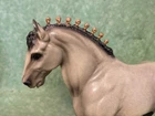 Breyer traditional scale Clydesdale Stallion. Repainted by Deb Buckler in 1993 to a faux original finish style fleabite grey. Slightly yellowed. Have a few marks that could easily be touched up. Great for those vintage customs classes at shows!! Sold as is. See photos. Mumbo Jumbo: all sales are final. No refunds or returns. All items are shipped insured. Should by some chance an item is broken in shipping, buyer will need to file a damage claim or repair claim with the post office. Insurance is purchased for that reason. Although breakage isn't anticipated, it can happen as I can't control the handling of items once in the possession of the post office. I do try to pack to ensure a safe delivery