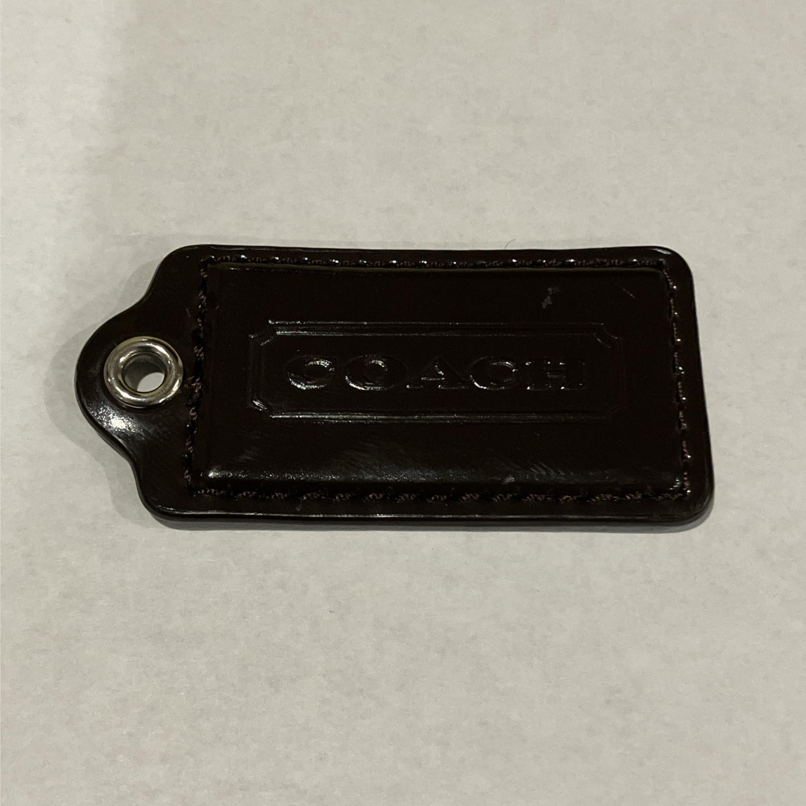 This Coach key fob is a stylish little upgrade for any bag or keys! The dark brown patent leather looks sleek, and the nickel hardware adds a luxe touch. Even with the tiny scuff (barely noticeable), it’s totally worth it—great quality and a perfect gift or treat-yourself piece. Love it!