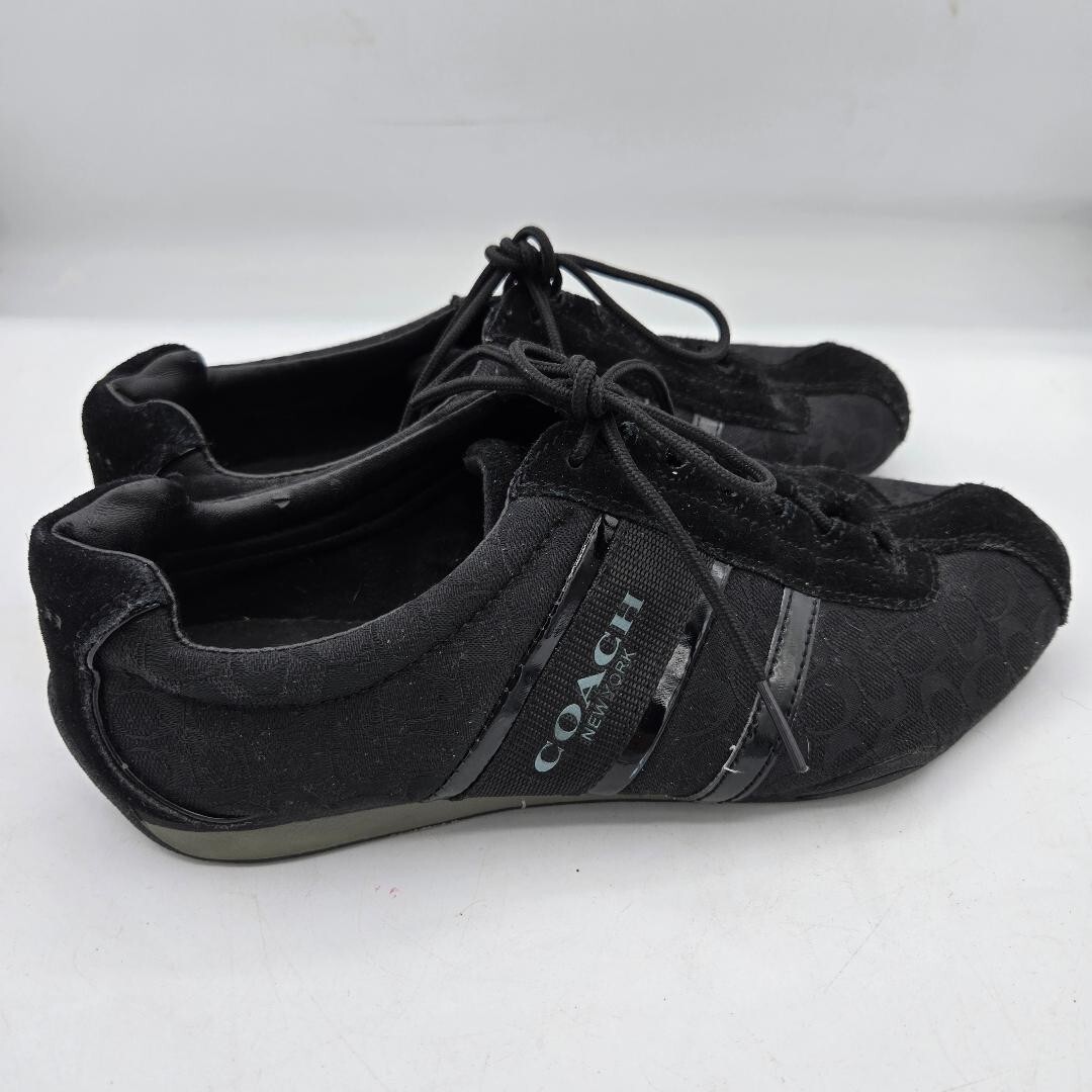 The COACH New York REMONNA Sneaker Shoe in women's size 8B is a stylish and comfortable casual shoe designed for everyday wear. Made with black canvas lining and fabric upper material, this designer sneaker features the signature Coach Remonna model in a sleek and modern design. The shoe width is labeled as B, making it suitable for a standard foot size. With the iconic Coach brand and high-quality construction, this sneaker is a versatile and fashionable choice for any woman's wardrobe. Bin A
