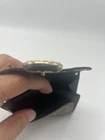 This Coach wallet is a must-have for any fashion-forward woman. With its colorful and vibrant design, it is perfect for adding a pop of color to your accessory collection. Made from high-quality leather, this wallet is durable and built to last. Featuring a two-fold design, this wallet is perfect for storing all of your essentials, including your cash, credit cards. The rivet accents add a touch of edginess to the overall design, making it perfect for a woman who wants to make a statement. Whether you're running errands or going out for a night on the town, this wallet is sure to become your go-to accessory.