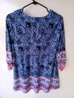 COCOMO Multicolor Sequin 3/4 Sleeve Women's Tunic Blouse Large 96% Polyester and 4% Spandex Slight stretch Curved bottom Measures Flat Approximately: 28 1/2" length 17" chest 18" waist 12 1/2" sleeve length (armpit to cuff) Very Good Condition. No stains, holes or rips detected Fast Shipping