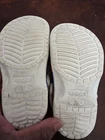 These Crocs feature a vibrant psychedelic swirl pattern in multiple colors, combining comfort with artistic design. The classic clog style includes ventilation ports and adjustable heel straps for customized fit. • Iconic Classic Crocs silhouette • Ventilation ports for breathability • Adjustable heel straps • Non-marking soles • Lightweight Croslite foam construction • Water-resistant design CONDITIONS pre owned, minor wear on sole and scuffs, good conditions. see photos for flaws details. Some minor wear on soles