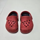 These Crocs slip-on clogs are perfect for your little one's casual summer, fall, or spring outings. The colorful red and blue design adds a fun touch to any outfit, while the rubber upper material ensures durability and comfort. These shoes are easy to slip on and off, making them convenient for busy parents and toddlers alike. The clogs come in a size 5C and are part of the Crocs brand, known for their quality and comfort. Whether your baby is playing outside or going to a park, these shoes are a great choice. Made in Mexico, they are a unique addition to your child's shoe collection.
