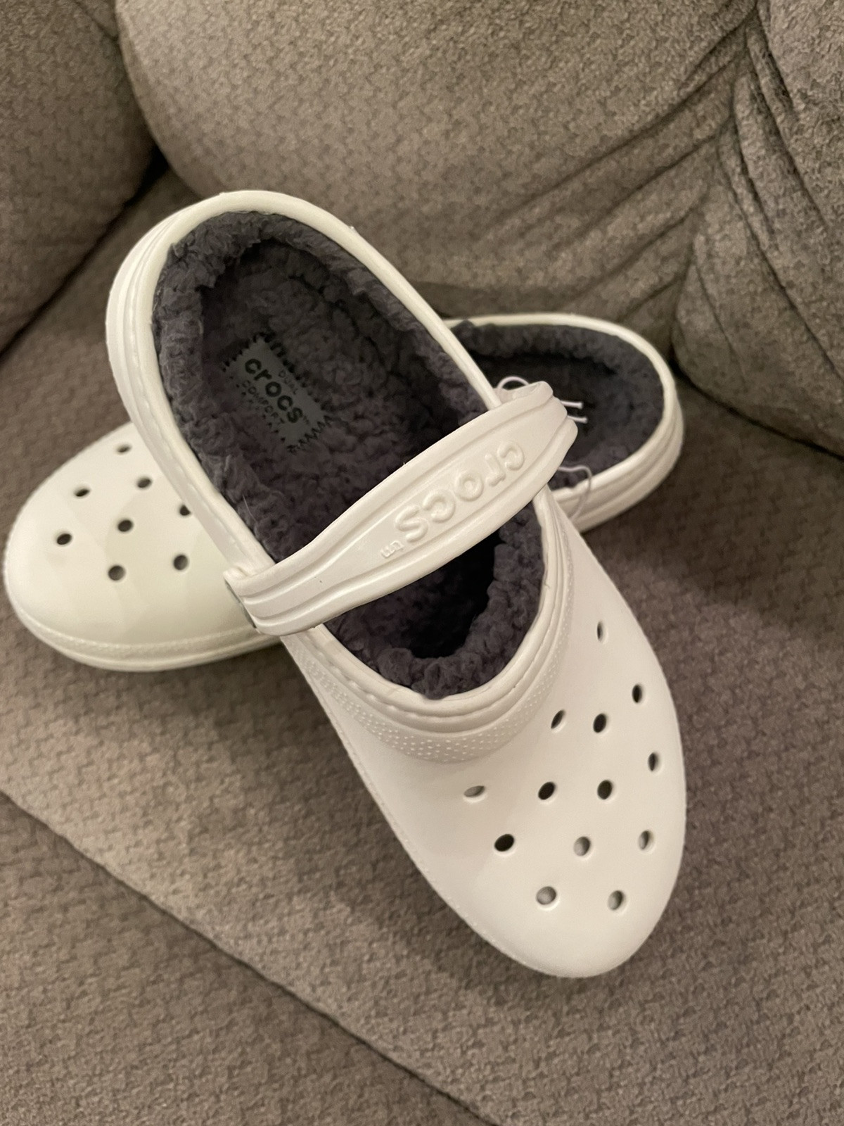 CROCS Unisex Kids Classic Faux Fur Lined Clog 207010 Youth Size J6 White Gray