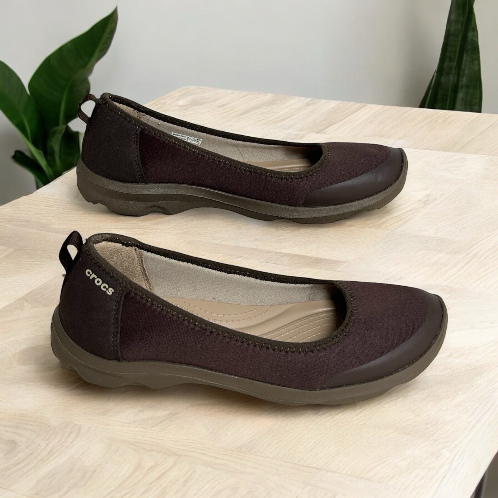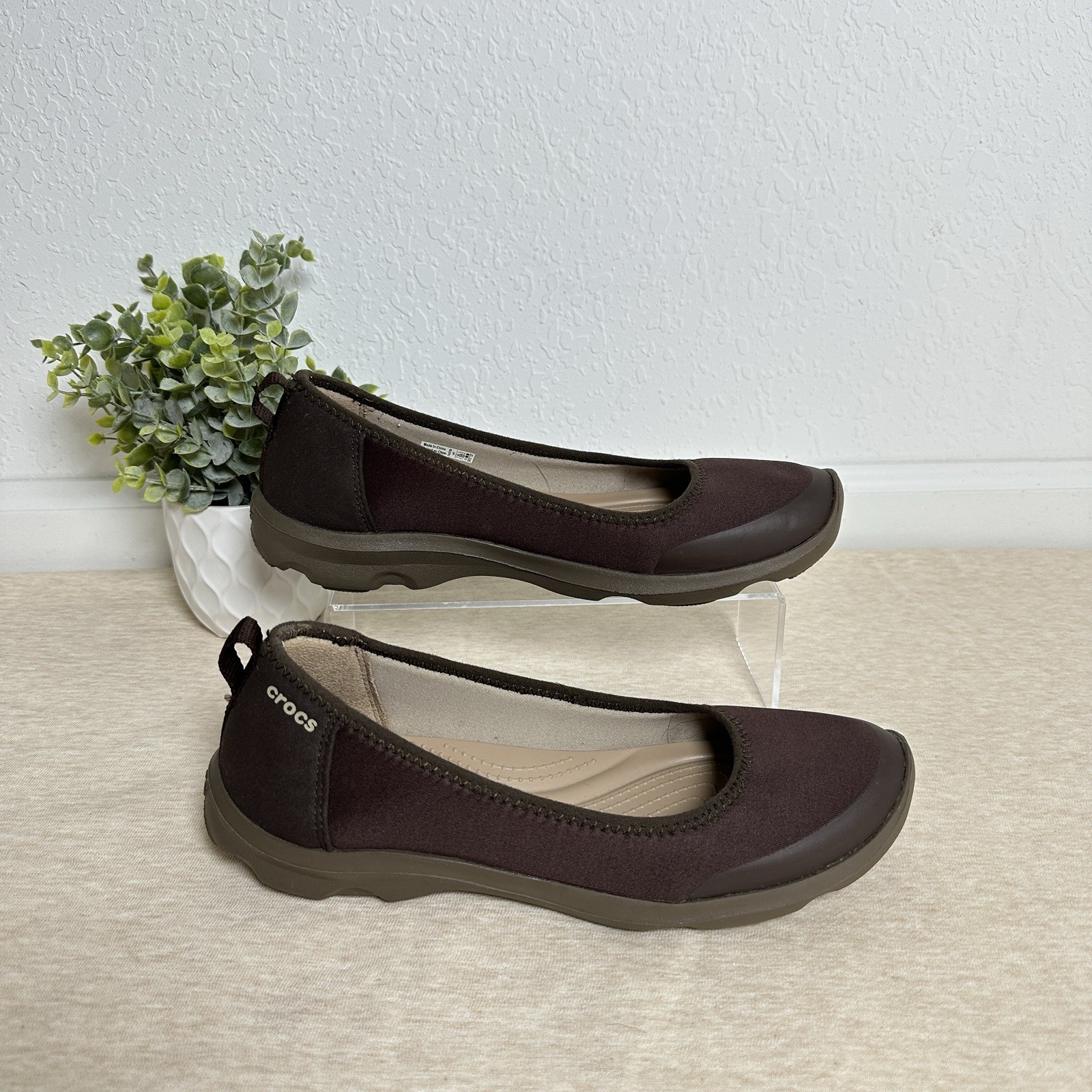 CROCS Women’s Duet Busy Day Brown Flats Slip On Loafers Size 9 SIZE: 9 COLOR: Brown MATERIAL: Fabric CONDITION: Good used condition, please see all the pictures. Professionally cleaned and sanitized with signs of wear, please see all the pictures. The item shown is the exact item you will receive. Condition: Pre-Owned Good