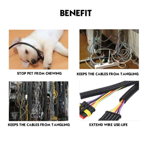 morethink , as an expert in the field of cable management,insist on providing customers with the top quality wire management products. Our cable management is used to wrap and protect wires & organize cables & hide and conceal wires in many application, e.g. Automotive,electronics, home and office etc. Split Wire Loom - Management & Protection Cabes / Wires Adjustable Length & Easy to Install Say goodbye to cluttered cabling eyesores that are impossible to ignore. Our Split Wire Loom Conduit will keep your wiring setup organized and tangle-free. Ensures that the cables behind your TV or computer remain neat and tidy. Flexible braided material ensures it won't scuff up the room either. Hide and conceal TV cords With our top quality cable concealer,You can easily hide cables and cords.Compared to other on-wall cord cover raceway, our cable hider is no glue , no break the wall and easy to replace. Our Wire Loom resistant to various abrasions, reduct damage,arrange the harness cable.Prevent Pet From Chewing Cords There are other colors to choose from in the shop!!! There are many applications of Split Conduit ··· ⭐: Split for easy installation and cable access(Easier handling, inspection and maintenance of wires.) ⭐: UV resistant,Flame Retardant,Resistant to abrasion, gasoline, oil, and many other etc ⭐: Wire protector tubing is used to wrap wires,and make cables wires neat and orderly ⭐: It is lightweight, very flexible and provides abrasion protection, crush resistance and is easy to install over wires. ⭐: This highly flexible conduit can attribute to a sleek, finished appearance by concealing unsightly wires. ⭐: Good flexibility. No poison and no smell ⭐: Best resistance to the hard weather conditions and minus pressure ⭐: With high glossy surface. Having a simple piece of tubing around your wires can preventing pet ,such as bunny ,puppy and mouse etc from having a chew on them. Sturdy and Flexible Split Wire Loom Conduit Is Very Popular! You can choose Any Inner diameter / Outer diameter Size!!!There will be a little error in the size, please forgive me Description: ●Polyethylene split loom tubing has become one of the most popular conduits for holding groups of wires in position and protecting the wires against abrasion or crushing. ●Suitable for wire and cable pipelines for automobiles, ships, homes, offices, industrials, etc ●Uses: Organizes, Protects, and Holds Wires/ Cables Together for Various Applications and Projects ●Easy Install: The split that runs along the whole length of the loom makes wire insertion easy and once the wire run is inserted, the split remains closed. ●Application: High Quality, Durable Split Loom Tubing Cable Conduit Perfect for Industrial, Automotive, Household, and Marine etc Applications ●Just open the tubing along the slit and insert the wires. Wire loom is guaranteed to add trimness, fortification, and style to any application, large or small.Ideal for outdoor use, as it can shelter contents from rain, snow, sunlight and UV rays, salt, and even automotive fluids with no damage to the loom itself Made from durable polyethylene, the corrugated channel offers not only abrasion resistance, but also defense against puncturing, friction, and other forms of agitation that can otherwise damage delicate cabling. Features: ⭐: Ribbed design allows for a flexible tube that is easy to install ⭐ : When bent or twisted, the split remains closed ⭐ : Resistant to abrasion, gasoline, oil, and many other chemicals ⭐ : Wire protector tubing is used to wrap wires,and make cables wires neat and orderly ⭐ :A continuous split throughout, allowing the user to easily add/remove cables one at a time or in bulk with or without a wiring tool. ⭐ :It is lightweight, very flexible and provides abrasion protection, crush resistance and is easy to install over wires. ⭐ :This highly flexible conduit can attribute to a sleek, finished appearance by concealing unsightly wires. Split Flexible Conduit Flexible split conduit, created and designed for the protection and structure of running electrical wiring through machinery or buildings. Split conduit is a strategic choice for users who are looking to enclose cables in a tidy fashion or needing to repair damaged conduit. Typical Applications ★Cable assembling ★Under floor wiring ★Cable management and tidying ★Great protection for wiring looms and harnesses ★Enclosing fiberoptics Usage: ★Great for use in automotive applications such as installing power cables in your car. For example, if you are running a power cable from a fuse block to your amp ★ Loom tubing is also perfect for installing and protecting custom wire harnesses. For example, you can bunch all your AV cables into one tube segment for running a signal between a TV or Projector to other devices such as your amp and DVD player. ★This split loom tube can also serve as a great cable management solution in the office for organising computer cables, network cables and power leads ★Great for organizing and protecting multiple cables. This tube is split along its entire length making it easy to add and remove cables from it. ★This wire loom is also available in larger and smaller diameters,You can choose your need size or length for dressing TV/Stereo/PC/game areas, wraps cables tightly but not too tightly&securely, so easy to add cable, best and easiest way to hide mess cords, reorganize all cables Working Temperature:30℃-110℃ Short Term Use Temperature:30℃-110℃ You can select the size or length from the drop-down list This Wire Loom is measured by interior diameter (ID) The Diameter measurement would be (3%-8%)difference. Please make sure you DO NOT mind before you make any payment. We are the direct source. We do wholesale for small businesses and manufacturer(s). Please call or send us a message through the eBay messaging system for a quote for wholesale pricing for rolls and bulk orders.
