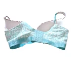 Featuring adjustable straps, floral cups with blue accent bad, hook and eye closure and lightly padded cups. career wear, office, business, travel, lounge, light support, girly, feminine, coquette girl