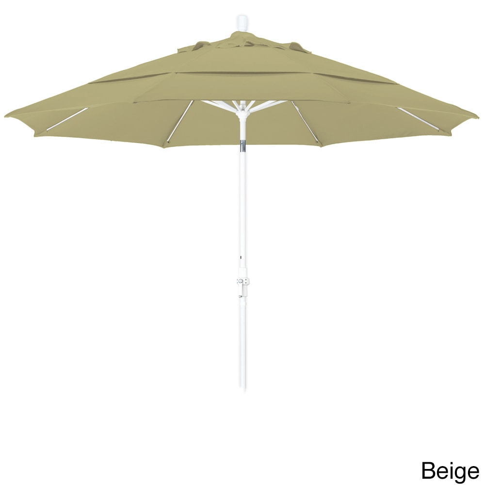 Revel in the beauty of a summer day without sweltering in the sun by seeking refuge under this market umbrella. Double wind vents prevent damage from forceful winds. Aluminum construction and a fiberglass ribbed design provide added resistance to weather damage. Polyester fabric is easy to clean and machine washable Umbrella base is white and made of durable aluminumUmbrella top comes in a selection of fabric colors including Mocha, Taupe, Natural, Antique Beige, Red, Black, Tuscan, Yellow, Sapphire, Navy Blue, Pacific Blue, Spa, Hunter Green, Purple and CapriUmbrella measures 132 inches long x 132 inches wide x 102 inches highAssembly is requiredMade in China Free Shipping Over $49.99* Details California Umbrella 11' Rd. Alum/Fiberglass Rib Patio Umb,Crank Lift/Collar Product Description: Revel in the beauty of a summer day without sweltering in the sun by seeking refuge under this market umbrella. Double wind vents prevent damage from forceful winds. Aluminum construction and a fiberglass ribbed design provide added resistance to weather damage. Polyester fabric is easy to clean and machine washable Umbrella base is white and made of durable aluminum Umbrella top comes in a selection of fabric colors including Mocha, Taupe, Natural, Antique Beige, Red, Black, Tuscan, Yellow, Sapphire, Navy Blue, Pacific Blue, Spa, Hunter Green, Purple and Capri Umbrella measures 132 inches long x 132 inches wide x 102 inches high Assembly is required Made in China
