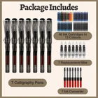 Versatile Set: Calligraphy pen set contains 7 fountain pens with different nib widths (0.5 mm, 0.7 mm, 1.1 mm, 1.5 mm, 1.9 mm, 2.5 mm, 2.9 mm) and 40 ink cartridges in 13 colours, fit for various font styles and meets your writing and drawing needs Two ways to refill the ink: Equipped with 6 ink converters, rotate the pen's plunger converter to extract your preferred ink. The portable ink cartridges can be used on the go to have an instant ink supply Comfortable Usage: Robust, durable stainless-steel nibs for even ink flow and smooth writing. Ergonomic grip area with triangular, streamlined design prevents finger slippage and provides an easy and comfortable grip Transparent Design: Viewing window on the pen barrel makes it possible to see the ink volume at all times to ensure that there is enough ink during use Multifunction: Fountain pen set combines the functions of writing, calligraphy and drawing. Ideal for calligraphy beginners, suitable for children and adults. A perfect set for writer and artist for daily writing, calligraphy, hand drawing and illustrating