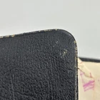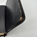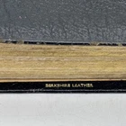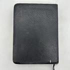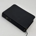 Badly worn Bible. Significant damage to the binding at the front hinge. The title page is missing. Several pages near the front and back are badly frayed, and it’s missing about half of the first page of Genesis. There are two ribbon bookmarks, one is badly frayed. And the Berkshire leather cover has a lot of wear and tear, especially on the edges. Please see pictures for a better idea of the cosmetic condition. Again, this is a wide margin addition with concordance bound in black Berkshire leather from Cambridge University press.