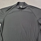 Crafted for comfort and performance, the FootJoy Men's T-Shirt is an ideal choice for those who value both style and substance. This 2XL black mock neck tee is designed with an athletic fit in mind, ensuring freedom of movement and mild compression to support your muscles during golf or other activities. The long sleeves and heavyweight fabric provide warmth and durability, making it a versatile addition to your activewear collection. The blend of polyester and spandex materials offers flexibility and a snug fit, while the solid black color ensures easy pairing with a variety of bottoms. The stand-up collar adds a touch of sophistication to the pullover style, making it a reliable option for any casual or athletic occasion. Enjoy the combination of functionality and sleek design in this essential piece from FootJoy's lineup.