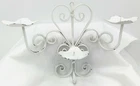 White Distressesd Hanging Metal Candelabra Heart Scroll Petal Candle Holders 10". Condition is pre-owned. Measurements are approximately 10 inches tall by 13.5 inches wide. Please check out our photos for further information. If you have any questions or concerns, please contact us. Thank you for your support! Please check out The Burly Owl Lady eBay store for more great products! Shipped USPS. We ship vintage and new items. We carefully pack with care to ensure the safety of each item. We do not pass these packaging costs onto the buyer. Furthermore, we do not charge any extra fees for handling. We only charge for the USPS shipping charge. We do monitor shipping prices frequently. In most cases, we do find the USPS to be the most inexpensive way to ship our products. We try to be as detailed as we possibly can in our photos and descriptions. We try to mention any imperfections in our vintage items. We may miss things from time to time or our photos may not be enough clarification for you to see the item. We will be gladto answer any questions or send you more photos. If at any time, you have a question or issue, please contact us immediately. We will contact you within 24 hours. We want to make sureyou have a good experience in purchasing any of the products. If you are happy with your purchase, please leave feedback. It will help us to grow and offer more great items in our store! Thank you for your interest in one of the many products in our eBay store! Renee Burly Owl Lady