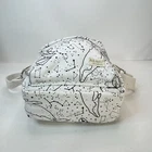 This crossbody bag is perfect for any occasion, whether it's for travel or just for casual use. The adorable animal print design features polar bears and a whale bear in a natural white color with silver hardware accents. The adjustable canvas strap and top handle in ivory add to the bag's functionality and style. The bag has a spacious interior lined with brown cotton and includes accessories such as a key. The fleece fabric type and polyester exterior material make it durable and comfortable to use. This crossbody bag is a must-have for any fashion-forward woman who loves animals and cartoons. Good used condition. Please see photos for wear and tear. There are two small marks on the strap that didn’t come out with washing.