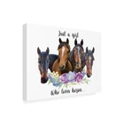 This ready to hang, gallery-wrapped Wall Décor Living Room Canvas by features a depiction of horses with the words just a girl who loves horses. that'll look great in any bedroom, kitchen, bathroom, or apartment. Whether it's contemporary, rustic, modern, or traditional style wall décor, offers a variety of high-quality, carefully built wall art that will surely complement any style with art themes that range from fascinating abstracts to breathtaking landscapes. Each bathroom wall art canvas is printed on durable cotton poly blended canvas using Giclee, a process for creating high-quality fine art reproductions that are nearly indistinguishable from the original piece. From the bedroom to the living room, or even the office, makes professionally handcrafted, ready to hang wall décor that will be admired for years to come. IMPORTANT: is committed to providing the consumer with the absolute best price and value on all of our products. NOTE: This is an exclusive product of and ONLY Posters & Prints by are GUARANTEED to be genuine. Avoid buying counterfeit products and transacting with unauthorized sellers. is a registered trademark protected by U.S. Trademark law and will be vigorously defended. ART WALL CANVAS - This Jean Plout 'Just A Girl Who Loves Horses A' canvas art by Art Licensing International is sure to complement any room décor with its Animals style featuring a depiction of horses with the words just a girl who loves horses.. GICLEE PRINTING - Each home décor piece is printed using Giclee, a printmaking process for creating high-quality fine art reproductions. The method results in rich details and color reproduction, making it nearly indistinguishable from the original piece. DURABLE MATERIALS - The wall art décor is printed on thick cotton poly blended canvas that is gallery wrapped around a sturdy natural wood frame, allowing for a frameless presentation and lasting quality. Each piece comes ready to hang for convenience. MADE IN THE USA - Not only does manufacture here in the US, but they also make all their canvas art products in the US for a truly 100% Made in the USA product. PRODUCT DETAILS - Materials: Natural Wood and OBA-Free Cotton/Poly Blend Canvas. Made in the USA.
