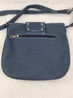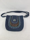 Elevate your accessory collection with the Canyon Sky Women's Denim Crossbody Bag, a versatile and stylish addition tailored for those who appreciate a blend of convenience and fashion. Boasting a semi-circle shape and a medium size of 10"x9"x8" inches, this bag offers ample space for your essentials without the bulk. The exterior features a classic blue denim fabric with studded accents, complemented by a functional bandana pattern, and a durable crossbody strap in a matching hue. The bag's interior is lined with a black fabric that ensures your items stay secure and dust-free, while the mix of silver, blue, and brown aluminum hardware adds a touch of rustic charm. With a mix of magnetic and zip closures, your belongings are kept safe and organized. Whether you're out for a casual day, traveling, or need a compact accessory for workwear, this Canyon Sky crossbody bag meets the mark for style and practicality.
