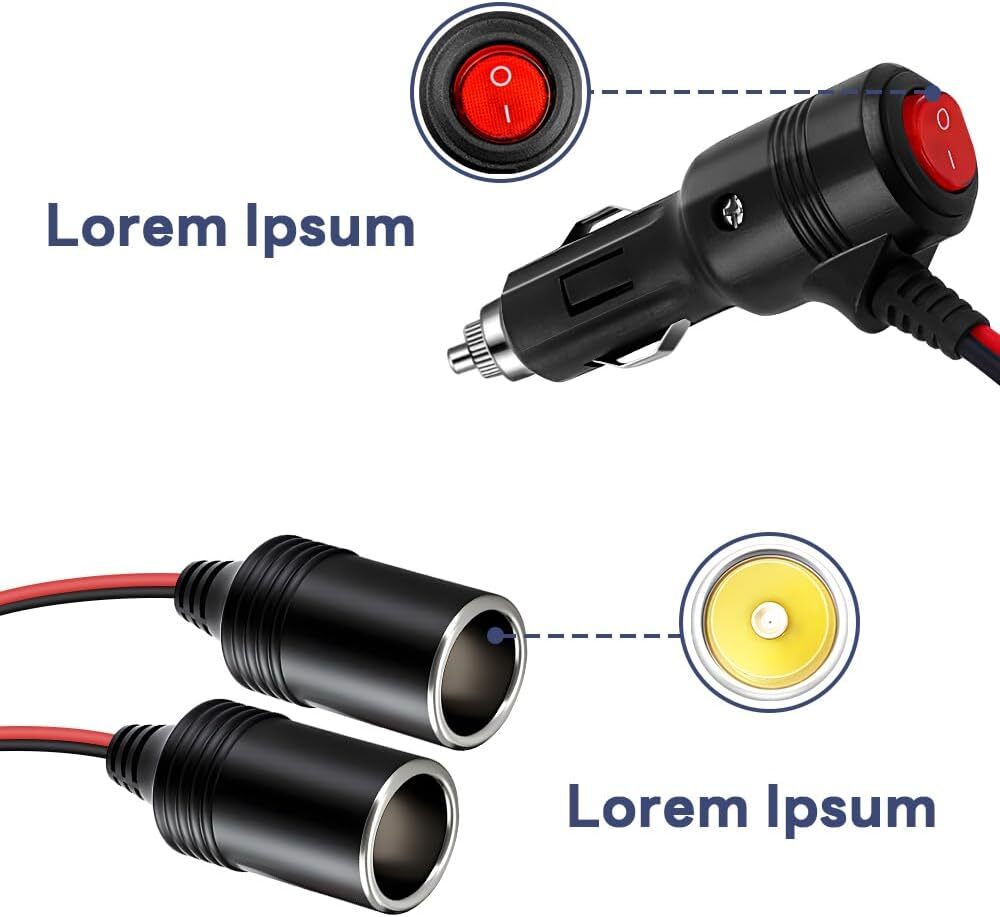 Car Cigarette Lighter Splitter, 12v Splitter Adapter for Car,1 to 2 Car Cigar... Cigarette lighter adapter with on off switch,12v cigarette lighter socket splitter,Car 12v Splitter: Dual cigarette lighting holes can simultaneously use two 12V devices for driving records, GPS. 12V/24V two female plug socket universal voltage, suitable for most car models, such as sedans, off-road vehicles, large trucks, etc. Car Mounted Cigarette Lighters Plug Splitter & Widely Compatible: This cigarette lighter jack is suitable for use with devices with the same interface as car chargers, car refrigerators, and car air pumps. Easy to use, no installation required. There is a power indicator light on the male plug, which can check the connection status at any time and is easy to find in the dark. Cigarette lighter adapter,Built in 15A Overload Protection Tube: The male plug is equipped with a replaceable 15A safety fuse to prevent over-current, over-voltage, and short circuit protection, ensuring the normal operation of the cigarette lighter and preventing damage to the car cigarette lighter due to overheating. Dual cigarette lighter adapters for cars: Split the car cigarette extension cable and insert a male cigarette lighter plug into a dual female DC port socket. It allows you to connect two 12V devices simultaneously. The current of the male cigarette lighter port is 10A, and the total current of the two sockets is 20A. Car charger adapter is ABS Fireproof Material Shell: designed with a frosted surface, durable, and resistant to high temperatures of 220 degrees. This heavy-duty lighter extension cable uses SPT-2 16AWG pure copper UL certified wires to provide stable current for your equipment. Shipping We offer FREE shipping on all orders! We ship within Three business days of payment, usually sooner. We use a selection of shipping services such as UPS, FedEx, USPS etc. We only ship to the lower 48 states, no APO/FPO addresses or PO Boxes allowed. Local pickups and combined shipping options are not provided at this time. Return You can return a product for up to 30 days from the date you purchased it. Any product you return must be in the same condition you received it and in the original packaging. Please keep the receipt. Customer satisfaction is very important to us. If you have any problem with your order, please contact us and we will do our best to make you satisfied. Contact Us If you have any queries, please contact us via ebay. We usually respond within 24 hours on weekdays. Please visit our eBay store to check out other items for sale! Thank you for shopping at our store.