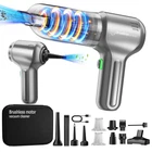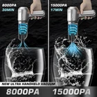 【Powerful 8000PA and 15000PA Suction】 - Our portable car vacuum offers two powerful suction modes, 8000PA and 15000PA, ideal for cleaning your car interior thoroughly. Designed for everyday use, it effectively handles dirt, dust, and debris. Simply press and hold for 3 seconds to power on and switch between modes with a quick press. 【All-in-One Vacuum, Blower, and Pump】 - This 3-in-1 mini vacuum cleaner combines vacuuming, blowing, and pumping functions, making it a versatile tool for your car and home. Clean crumbs, pet hair, and dust from carpets, upholstery, and tight spaces. Additionally, use it as a BBQ fan or a tire inflator, enhancing its functionality. 【Efficient Type-C Charging and Battery Indicator】 - Equipped with a Type-C USB charging cable, car vacuum clean charges fully in just 3 hours and runs for 15-20 minutes. The green power indicator ensures you know when the battery is fully charged, while the built-in power reminder alerts you when it’s time to recharge. 【Compact and Lightweight for Easy Handling】 - Weighing only 0.83lbs, the cordless handheld vacuum is designed for easy maneuverability and storage. Its small size makes it perfect for quick clean-ups in your car and around the house. The washable HEPA filters and de-tangling brushes keep the vacuum in top condition. 【Complete Set】 - Our cordless car vacuum makes an excellent for car and home owners. It’s perfect for Christmas, birthdays, and other special occasions. The 13-piece set includes various attachments and a storage bag, all packaged in an elegant box, providing a comprehensive cleaning solution.