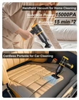 Car Vacuum Portable Cordless,4 in 1 Car Vacuum Cleaner,15000PA High Power Suc...