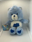 This Care Bears Grumpy Bear plush toy is a must-have for all bear collectors. With its blue bear color and rain cloud design, it is a unique addition to any collection. This 13-inch stuffed toy is made of high-quality materials and features Grumpy Bear's classic grumpy expression. The toy is brand new with tags and was manufactured in 2002. It is an original and licensed reproduction, and is perfect for all occasions. This Care Bears Grumpy Bear plush toy is a great gift for any bear lover, and will provide hours of enjoyment.