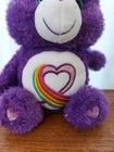 This is a 13-inch plush Care Bears Rainbow Heart bear from the 35th Anniversary collection. It features a purple sparkle design, manufactured in 2017 in China. With a contemporary age range, this adorable bear is part of the Care Bears brand and recommended for ages 2 and up.