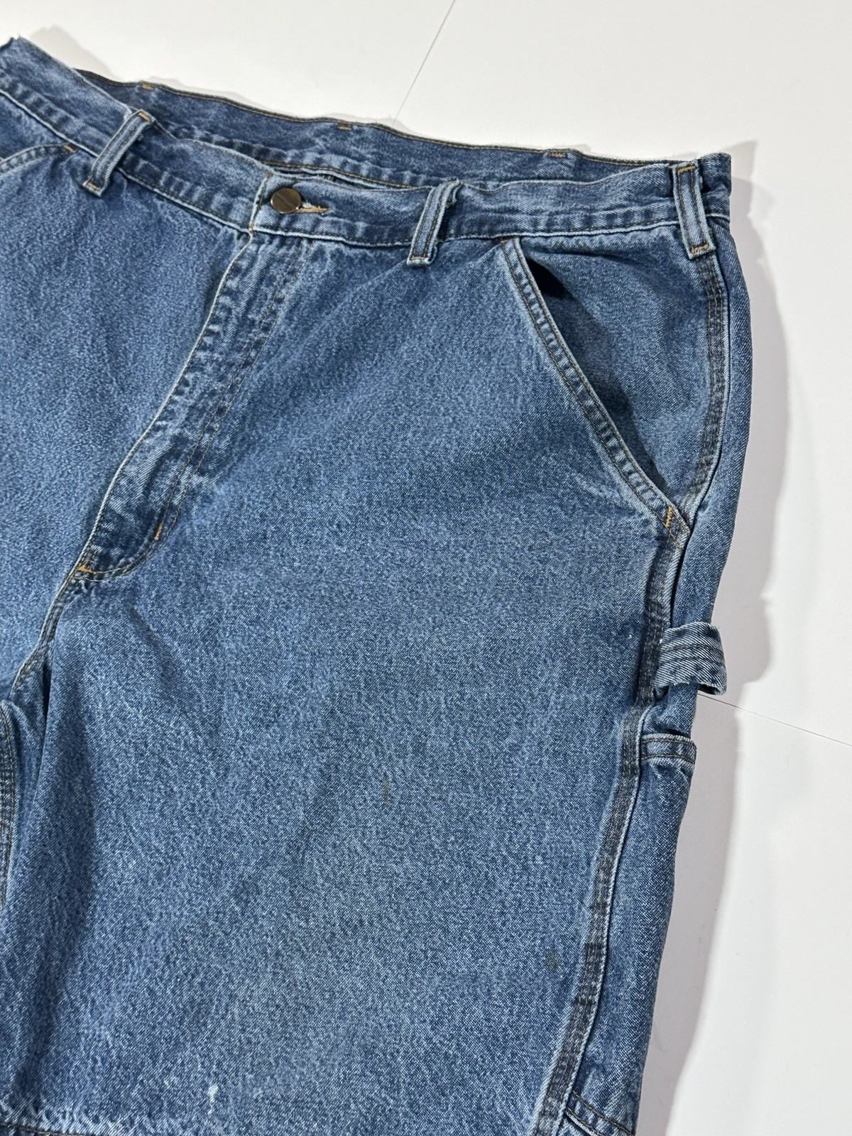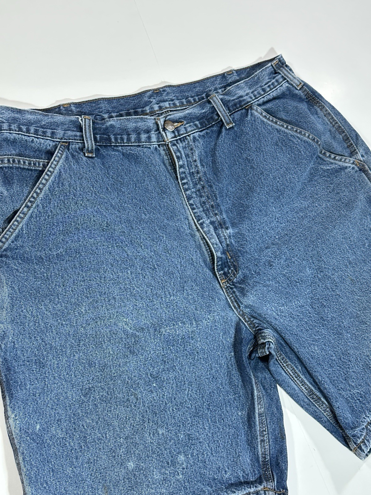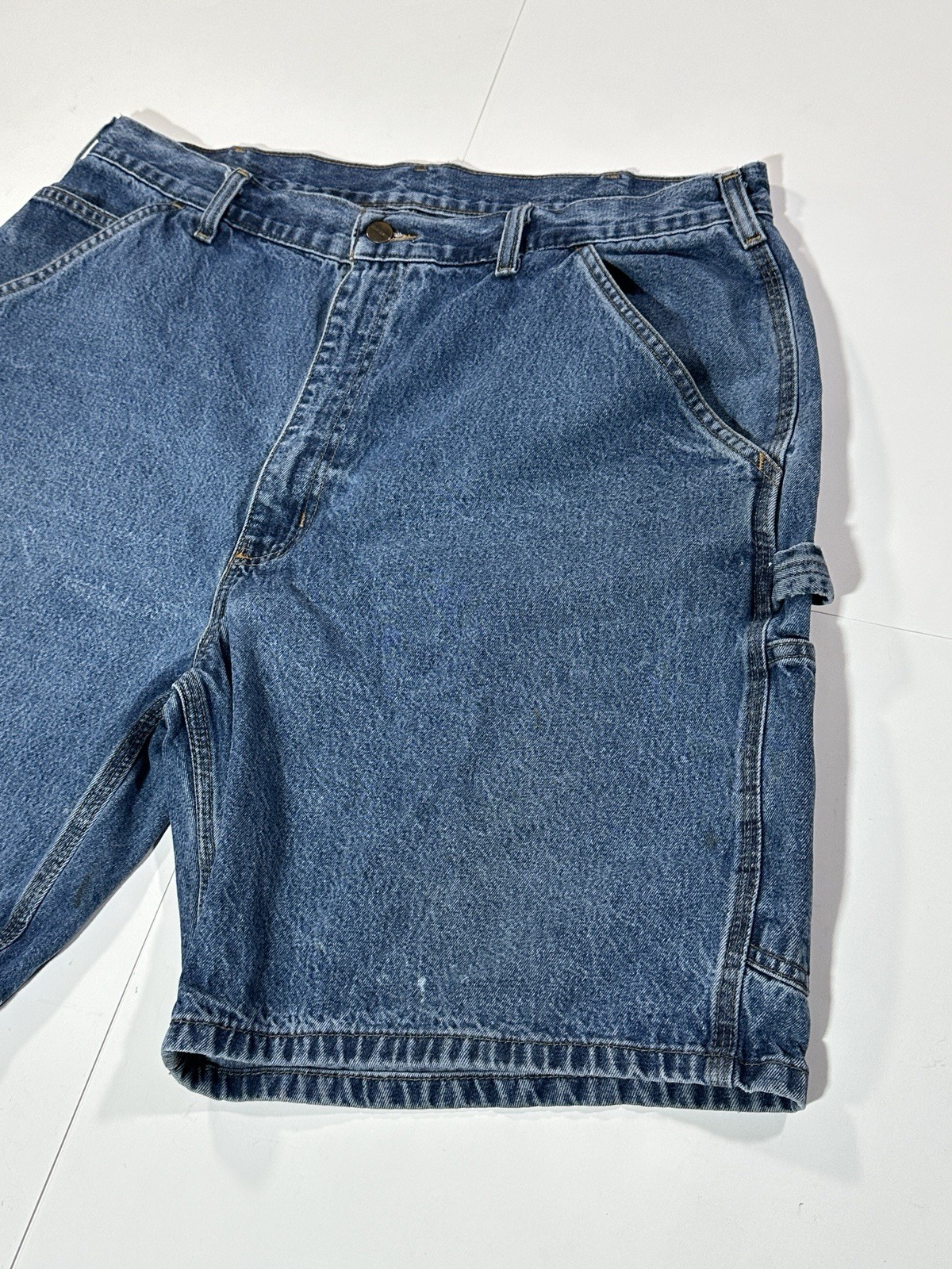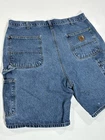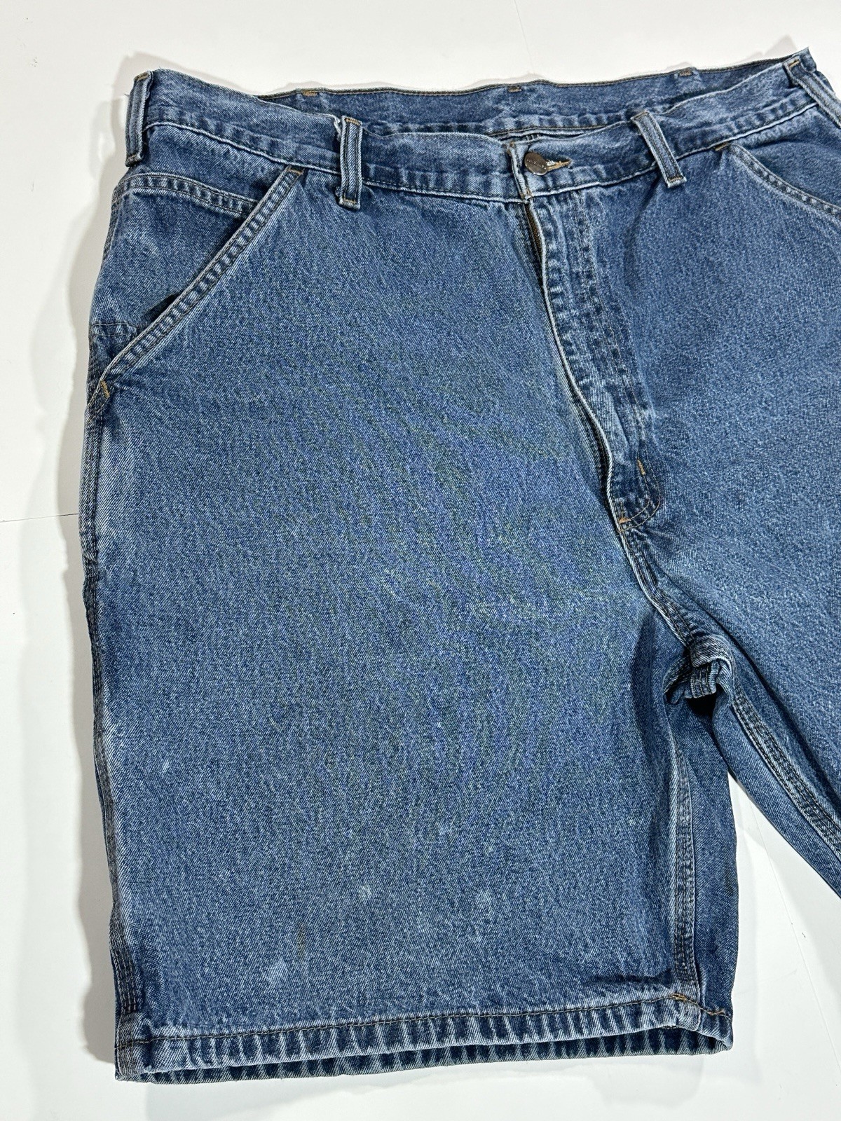 Carhartt Carpenter Denim Blue Jean Shorts D28 DPS Men’s Size 38 VTG Distressed Decent - okay condition overall - see ALL photos very closely See photos for measurements Shorts have moderate wear/tear overall throughout - some discoloration/fade both sides - has marks/spots - little stains marks throughout - mostly front side - little paint marks/shadow marks - some other little spec marks/spots - mildly distressed denim jean shorts - etc - see ALL photos very closely for condition of the shorts Will ship with care