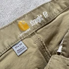Experience durability and comfort with these Carhartt pants in a classic khaki beige color. Designed for men, these work pants feature a straight fit with a mid-rise waist, flat front, and button/zip closure. Made from a sturdy canvas material with added stretch, these pants are perfect for casual or workwear occasions and easy to care for with machine washing. With plenty of pockets for your essentials, these pants also include accents such as the Carhartt logo and are suitable for all seasons. Whether you're working outdoors or indoors, these pants will keep you comfortable and stylish all day long. Don't miss out on this reliable and versatile addition to your wardrobe!