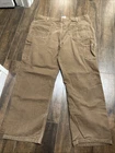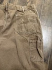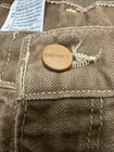 These Carhartt pants are designed for men in a size 40x30 with a classic brown color and a durable canvas fabric. They feature a carpenter style with flame-resistant properties, making them suitable for various occasions such as travel, casual wear, or workwear. The pants have a straight leg fit with cargo pockets, a flat front design, and closure options of both zippers and buttons, providing a practical and versatile option for everyday use.