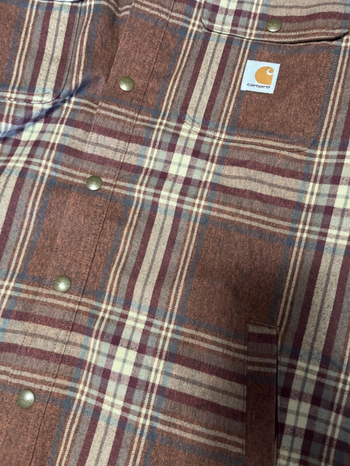 Stay warm and stylish with the Carhartt Flannel Sherpa Lined Plaid Jacket. This mid-length overcoat is a perfect addition to your workwear or outdoor attire. The relaxed fit ensures comfort while the spread collar adds a touch of sophistication to your look. It's crafted from durable cotton with a cozy polyester lining, making it an excellent choice for fall, spring, and winter. The jacket features a classic plaid pattern in vibrant, multicolor that is sure to stand out. It's equipped with a convenient snap closure and is machine washable for easy care. Whether you're walking, hiking, or hunting, this jacket is designed to keep up with your active lifestyle while providing the warmth and protection you need.