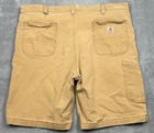 Carhartt Relaxed Fit Canvas Work Shorts Mens 42 Hickory Brown Stretch Distressed Some stains, fading and one hole - great for outside work to not distress other clothing! Good overall pre-owned condition and laundered. Please see measurements in photos. I ship next business day, but sometimes same business day and Saturday if order is paid for early enough. Please let me know if you have any questions. I am open to offers!! Feel free to look at other items in my store! Thanks!