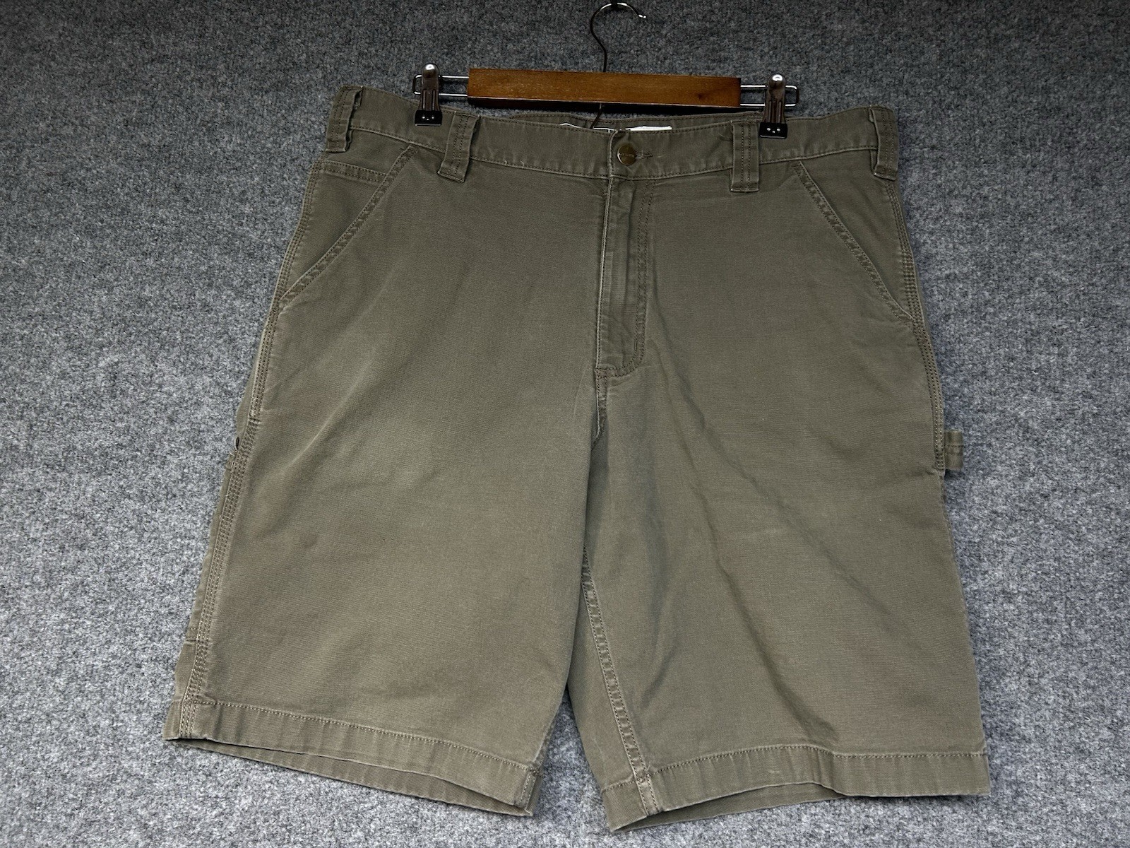 Item is in pre-owned condition. Please see all photos and measurements before purchasing, thank you. These shorts are kind of green/gray colored. Inseam: 10 inches Waist: 37 inches