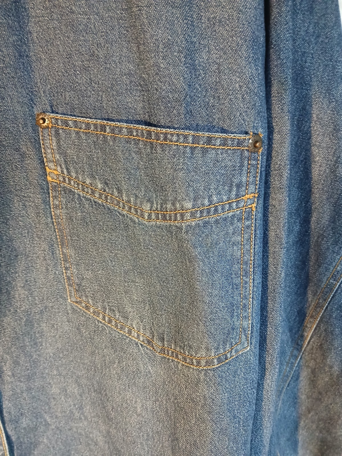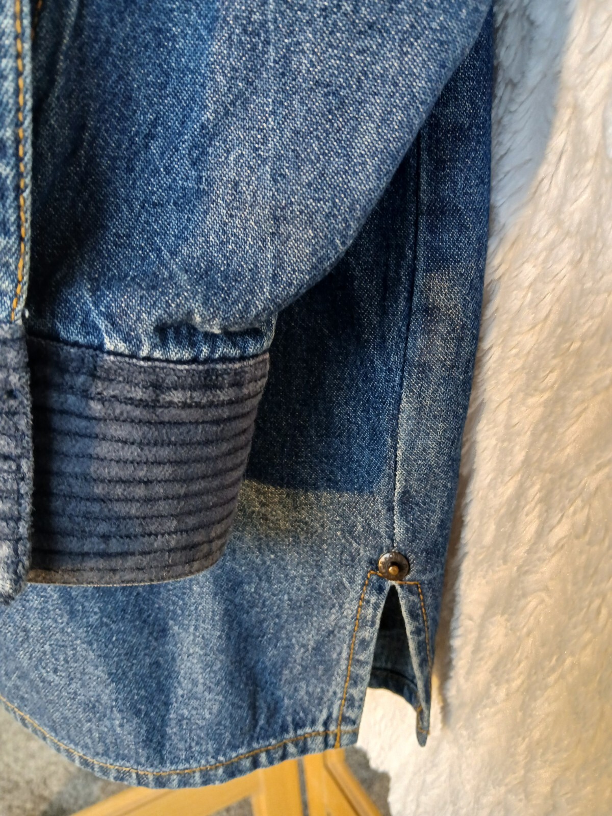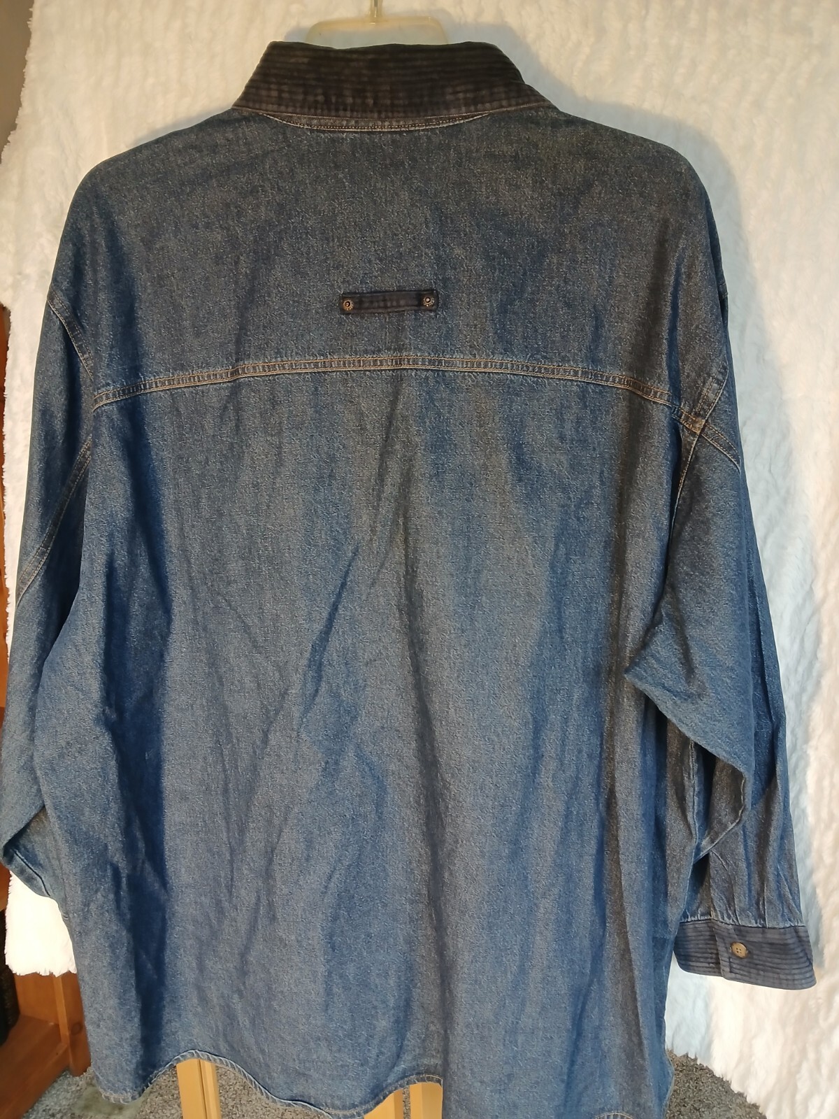 Love this denim shirt! The corduroy collar and cuffs add a stylish touch, and the 100% cotton feels so comfortable. Perfect for casual outings or dressing up—versatile and well-made with reinforced pockets. Easy to care for and fits great!
