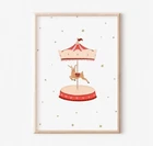 Carousel Art Print, Nursery Wall Decor, Whimsical Kids Room Art
