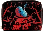 From the horror movie Friday the 13th, this wallet features Jason's Mask! Featuring incredible detail to bring Jason's Mask to life, this Loungefly wallet is made of vegan leather (polyurethane), zips closed with sturdy metal hardware, and has credit card slots as well as a clear slot for holding your ID. Note the unique, coordinating inside lining! Bring home a piece of Friday the 13th today! Pick up the glow in the dark Loungefly bag to go along with this in our other listing! Check out our other listings for combined shipping and thanks for looking! **Veteran Preference Female Owned Business**